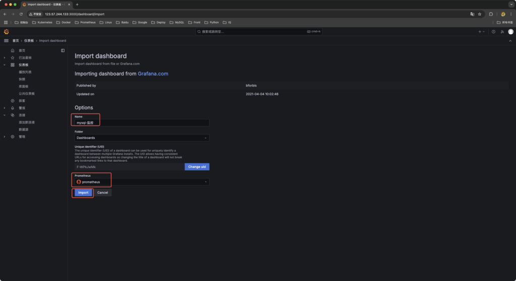 7、创建mysql dashboard