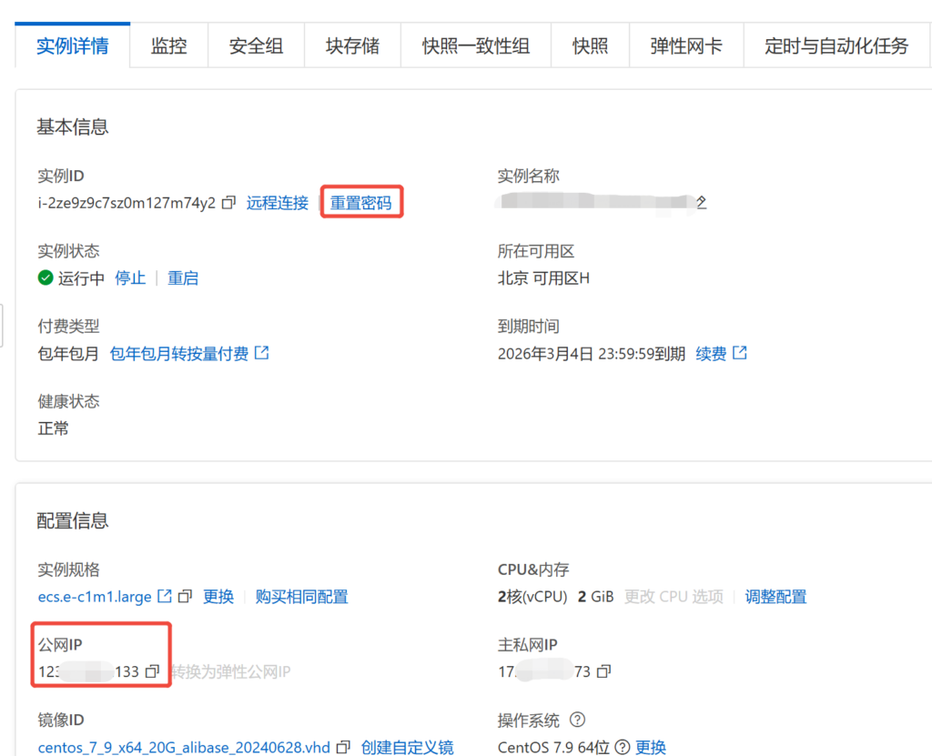 重置密码后通过公网IP即可使用ssh工具远程连接。